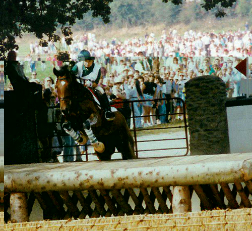 Sarah and she quickly showed her exceptional jumping and galloping ability and upgraded to advance in two seasons. She finished in the top 15 in three Advanced one-day-events in England in the spring of 1992, suggesting that the Barcelona Olympics were a real possibility, but the first fall in her life at Punchestown put paid to that dream. It subsequently turned out that she should never have gone out on the cross country as she had overheated and had a temperature of 106 degrees before the start!